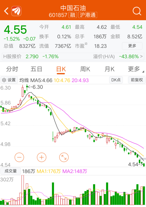 其次,我们需要对中国石油的股票进行基本面分析。 以2021年9月6日数据为例,中国石油股票代码为601857,每股市价为4.58元,市值为1.16万亿人民币,市盈率为9.63倍,净利润为1207亿元,每股净利润为0.33元。从这些数据可以看出,中国石油具有一定的估值优势和良好的盈利能力。